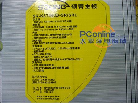 这款主板同样是基于VIA K8T800+VIA VT8237R芯片组,从上面的图片来看,主板并没有因低价而严重缩水。