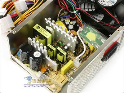 从整体上看这款电源的设计不错,在内部元器件的规格都普遍大的情况下各个元器件并不显得拥挤。