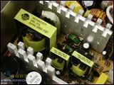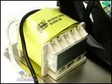 将一级EMI悬起来的设计很不错,节约了不少空间,二级EMI电路设计在电路板上。完备的一级和二级EMI电路能使电源的输出更加纯净。被动PFC固定在外壳上,个头比较大。