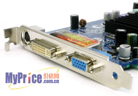 这款产品采用被动方式散热,黑色散热片覆盖住整个显示芯片,工作时十分安静,散热效果也很不错,运行中显卡没有过热现象。在输出方面,该显卡配备了CRT、TV、DVI全套输出接口,满足了用户的多种输出需求,并且可以利用nView功能实现双显示输出。