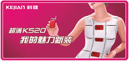 从外观来看,K520保持了科健移动公司一贯唯美的设计风格,15.5mm超薄机身,重量为74g,周围采用了圆弧的设计,全机采用高贵的彩漆工艺,手感非常好。机身共有玛瑙红、珍珠银、翡翠绿、宝石蓝这四种颜色可以选择。