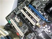 扩展槽上除了有一个PCI Express x16×1、PCI Express x1×1、三个PCI槽外,华硕还新加入了一位成员-Universal PCI Express,如果使用主板自带的SLI连接器(GT Soft Bridge),也许你的i955X主板真的可以实现SLI功能了!。