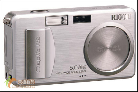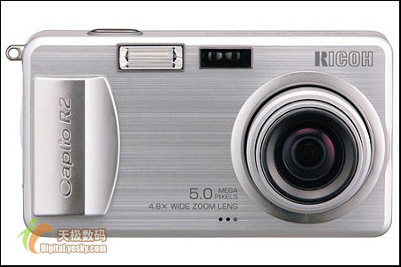 这款理光 DC 是日前发布的一款 500 万像素精品,在外观上 R2 几乎和早前的 R1V 相同,不过这次的 R2 提升到了 2.5 英寸的液晶显示屏,以及在按键上做了改进。使得 R2 使用起来更加方便一些。另外这款 R2 有银和黑色两种颜色可供选择。 R2 也继承了 R1 的所有优点,如快速的开机时间, 4.8X 的光学变焦, 28mm 的广角能力等等。 R2 新增加一个很有用的功能,那就是“智能慢快门速度限制”,在使用慢速快门的时候,能最大限度的减少手震带来的影响。另外 15 区自动对焦标识显示,在对焦的时候不需要移动相机,就可正确的在 LCD 上显示出焦点所在的地方,操作起来更是得心应手。还有一个微距自动对焦模式,在微距拍摄时,能准确的符合你的需要。