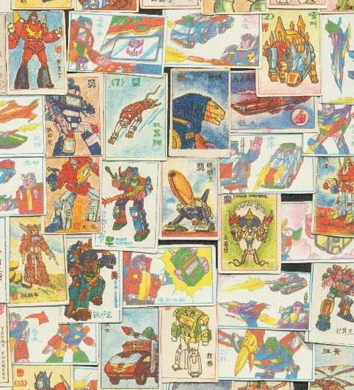 洋画是一张大纸,上面印着哪吒闹海、八仙过海、变形金刚 and 恐龙特急克塞号等连环故事。
