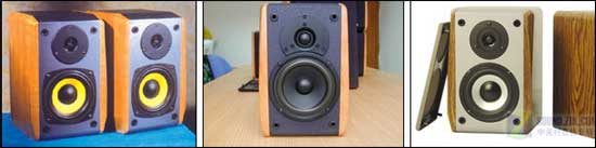 左:漫步者R100TC北美版、中:漫步者S5.1的卫星箱、右:麦博B-73