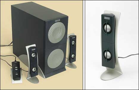 左:Harman Kardom i-Sub低音炮(2002年) 右:麦博A-6351
