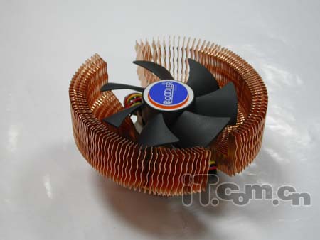 虽然它底座的抛光并不是太完美,因为采用全铜的设计,热传导性能比铝合金和铜铝结合总体的还是要高一些,加上采用大尺寸双滚珠的散热扇,转速在1700到3000RPM的转速还是很安静的。整体的散热效果还是不错。市场价格在190元左右。他是一款多用型的产品,适合于Socket 462、478、754和Intel LGA 775接口的CPU,适用的范围还是比较广。