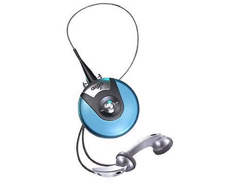 月光宝盒E007是一款纽扣式MP3,挂在胸前如一个纽扣一般,非常小巧,造型也十分独特,它采用圆形的机身,银色铝合金外壳。在机身的表面没有任何多余的修饰,除了“AIGO”标志外只设有一个锁定键,可以对机身上按键进行锁定。