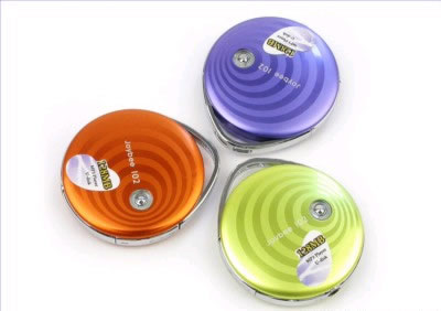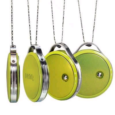 明基Joybee DA102也是一款纽扣式设计的MP3, 41×8.8mm的体积比一枚一元硬币大不了多少,采用了时尚鲜亮的宝石蓝、橘子橙和嫩芽儿绿等诱人色泽,非常受女士朋友的钟爱。可以说,Joybee DA102不仅是一款超迷你的MP3播放器,更是时尚而典雅的流行配饰。