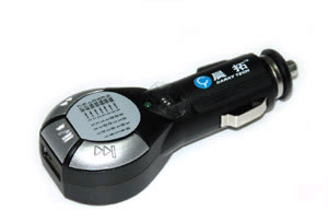 晨拓MP-308车载音乐电台被称为有车族的福音,它的外观十分小巧,整个产品看上去就像是一把大钥匙。它是利用汽车上的点烟器来工作的,因此接头采用专用的设计,前面是与车上的点烟器相匹配的接头,后面则是一个USB接口,中间有绿色的指示灯,当你将它与点烟器正确连接之后,指示灯就会处于闪烁状态,提示你它目前工作正常。