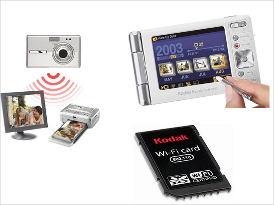 柯达在今年1月份发布了一款具有全新设计理念的数码相机Easyshare one。这款机型的新理念主要体现在它便利的浏览以及无线数据输出,同时还具有触摸屏设计。Easyshare one的3.0英寸屏幕一下子跳出了2.5英寸的竞争圈子,同时它还具有多角度旋转功能,无论是取景,自拍,还是浏览都极为便利。