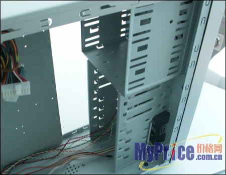 内部结构上,MG432采用的是一通到底的设计,含有4个5.25英寸区、6个3.5英寸区和一个软驱位,加上箱体的加长设计,可为用户提供更大的扩展空间。
