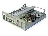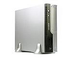 这款来自多彩的M0608比起上面的B166,在外形上有了很大的改变。看上去,似乎更像是一款几乎被人们遗忘的卧式机箱。不过由于如今影碟机都是类似形状,所以在通向家电化的路上它其实丝毫不逊色于B166。为了配合液晶显示器,多彩特意为上述两款产品提供了支架。由于其银色的外观以及没有提供驱动器遮盖板,所以我们在选择光、软驱时要尽量选择银色面板的产品以免破坏了整体的美观。
