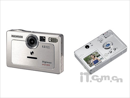 三星的卡片机型比较少,而U-CA401更是其中一款。这款机型的外观设计相当精致美观,外壳采用全金属,质感非常强烈。这款相机的外观比较独特,它的镜头设计在正面中间偏上,同时搭配了许多造型元素。让人惊讶的是这款机型的厚度仅为15.4mm,整款机型看起来非常小巧,它的净量仅仅为90克,挂在胸前丝毫没有沉重的感觉。