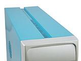 来自永阳的A209,可以说是本次测试全部迷你机箱中最可爱的一款。青色的主体颜色配合白色的面板颜色,整体显得十分清素。作为保护整体美观度的光驱挡板,A209可谓是别出新意。不同于其他产品的是在光驱外面增加一块防尘板,A209将这款挡板做成了滑盖式设计。用户在装好光驱后,只要将滑板滑过去就可完成操作。