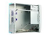内部扩展性能上,A209最多可以同时容纳一个软驱、一个光驱和一块硬盘。散热设计上,A209做的相当出色。其不仅仅在机箱背板处提供了两个60mm×60mm风扇位,还特意在侧板CPU对应的位置提供了处理器专用散热孔,如此完备的散热就好像是把标准机箱的标准缩小了一样。本次测试样品,永阳并没有发来配套的电源。不过在实际选购中,A209随机除了会安装一款核定功率为180W的电源外,还会在背板两个预留风扇位处安装好两颗风扇。