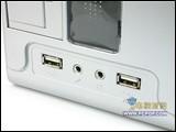 这款K301A虽然有着传统迷你机箱的外观身材,但是其功能却一点也不输与大机箱,前面板左侧竖直放置两个DVD光驱位以及一个软驱位,同时还增加了一个液晶显示面板,当然前置I/O接口也同样不少。