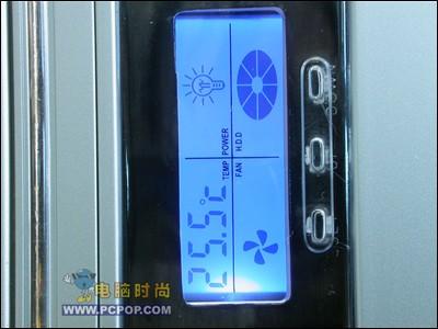 通电工作后,液晶显示屏就会亮起蓝色背光,并显示探头温度、风扇转速、硬盘状态等信息,同时还具有温度超高报警开启风扇的功能。