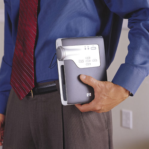 HP xb31占地面积比一本杂志还要小,不过接口齐全,系统兼容性也较为出色。让人遗憾的是随机提供的MD-I信号输入电缆只有模拟RGB接口,用户需要单独购买其它转换接口;并且画面色彩比较生硬,不生动,不适合在环境光线较亮的场合使用。