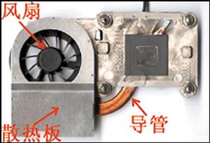 著名的IBM ThinkPad系列笔记本就采用了双散热管系统散热方式,它由三部分组成:双散热管、双散热板以及金属支架。 散热管是其中的核心,它可以有效地将热从一端传导到另一端。管内抽成真空,有纤维和水,一端贴近CPU,另一端则远离CPU。它的工作原理是:真空状态下,水的沸点很低,如果在管子的一端加热,水就会蒸发,把热带到另一端,到另一端后,水会冷却,再流回去,如此反复,CPU发热就很快散发了,其优点是没有活动零件,全部零件都密封在内,不消耗电能,使用可靠,寿命长。