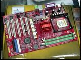 该款隽星主板采用红色的PCB板设计。其采用PT880+VT8237芯片组,可支持FSB 800MHz的Intel Prescott处理器、双通道DDR400内存,拥有SATA硬盘接口,并支持SATA RAID功能。板载功能方面,同样提供的相当齐备。板载有RTL的ALC655音频解码芯片。支持5.1声道音频输出,符合AC’97 2.3规范。并且提供有10/100MB网络接口以及USB2.0接口。