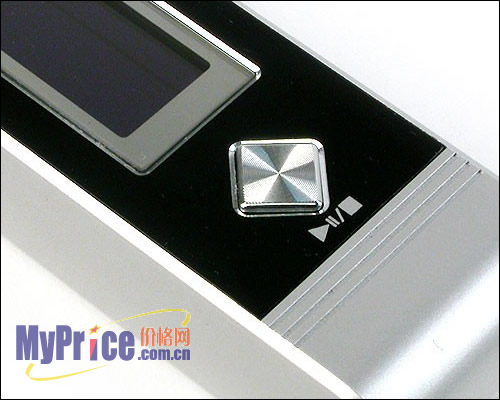 机身“开关机/播放/暂停”按键设计的较为醒目,呈正方形镶嵌在面板上,按键面积较大,上面还设计有精致的花纹,手感很好。