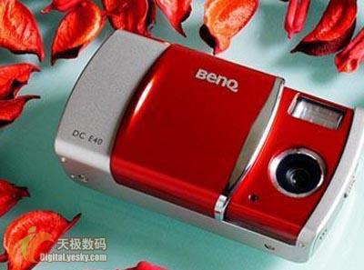 明基的数码相机产品一向以漂亮时尚的外观来吸引消费者。明基E40是一款专门为年轻的MM 设计的时尚系列数码相机。明基E40的有效像素为400万,是一款定焦数码相机,1/2.5英寸400万像素CCD,内置了8M的存储空间,支持SD卡的扩充,1.5" 彩色TFT液晶屏,使用了数码相机中少见的触摸控制屏幕的设计。前后面板上都没有多余的按键,只有在它的顶部有3个简单的按键,分别是模式、电源和快门键,它自带有8M 的存储空间。用它来拍摄AVI格式的动态短片。