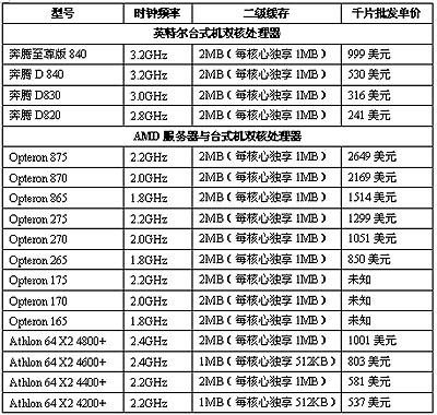 AMD方面的价格信息来自于它4月21日发布双核Opteron时公布的信息