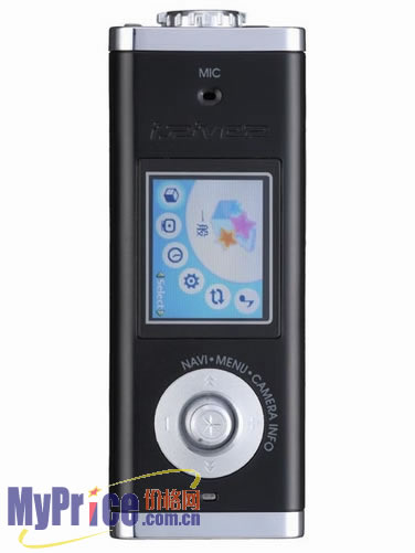 iRiver iFP-1090外观采用长方形设计搭配摇杆式按键,外形尺寸为91.1×34×31.3mm,重量约为63g。看上去简洁大方。iFP-1090最大的亮点是内置了30万像素的数码相机,具有拍照和预览功能。主机上搭载了1.2英寸26万色的液晶显示屏。