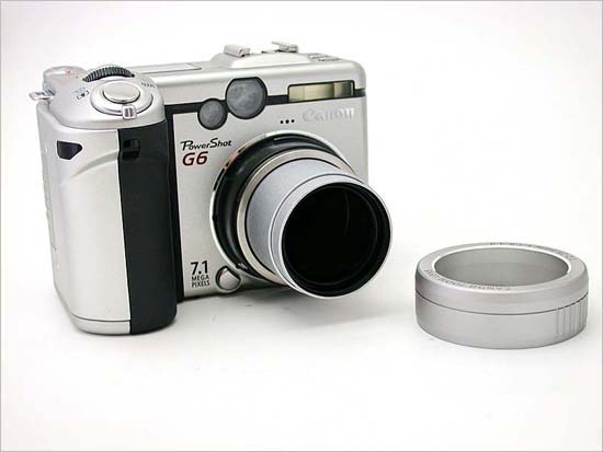 佳能G6外形设计更加紧凑和小巧,机身采用金属和塑料各半的材料,采用的CCD感光元件和S70一样,也是1/1.8英寸710万像素,镜头为4倍光学变焦,焦距范围相当于传统35mm相机的35-140mm,光圈范围为F2.0-3.0,快门速度为15-1/2000秒,最近对焦距离为50cm,最近微距则为5cm,可以达到每秒2张的连拍速度。作为一款旗舰级别的数码相机,G6提供了非常丰富的手动功能和多种场景拍摄模式,其对焦方式为TTL 9点自动对焦,提供六种白平衡模式,内置的闪光灯支持防红眼功能,并带有闪光灯热靴。G6的液晶显示屏为2.0英寸,11.8万像素可翻转设计,采用CF卡作为存储介质,专用锂离子电池BP-511,续航能力非常强大。