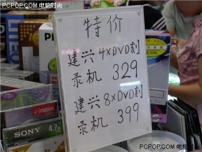 建兴在刻录界颇有名气,其产品具备比较不错的性价比,这次工包产品在价格方面更具优势,另外一款建兴8×DVD刻录机报价在399元,很适合想刻录但又不想花太多银子的玩家,有兴趣的朋友不妨去看看。