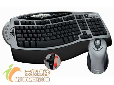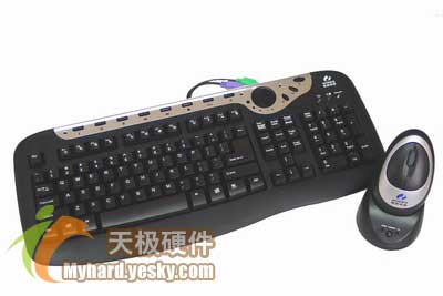 该套装是一款纯无线键鼠套装,套装中的键盘采用了零斜度设计,有方便拆卸的腕托垫,并且还可以直接利用多媒体控制键来欣赏MP3、DVD及CD。套装中的鼠标则是无限旋貂光电鼠标,分辨率为800DPI,扫描频率为2300次/秒,采用两节5号电池供电。该款套装的有效距离是2米,给用户的使用带来了较大的自由空间。