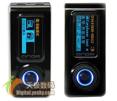昂达VX808拥有稳重的造型,流线型的机身,配合双色OLED屏的冷光显示,时尚感极强。63×27×15mm尺寸,含电池也仅重33克,机身的用料也相当讲究,采用了经过阳极氧化处理形成的氧化铝层,可保证长时间使用依然光洁如新。