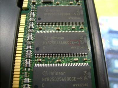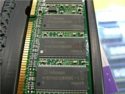 目前市场上流行的英飞凌DDR400颗粒编号主要有:BT5、CE5和BE5这3种,其中BT5颗粒最早曾经在宇瞻高端的“黑豹”内存上出现过。CE5和BE5是英飞凌随后生产的内存颗粒,超频性能均在BT5之上。而关于CE5和BE5究竟谁更强的说法大家众说纷纭,不过可以确定的是它们的标准时序都可以在2-3-2-5下稳定工作,一些品质好的CE5和BE5颗粒内存还可以工作在更高的DDR500上,性能非常强劲。另外,英飞凌原厂内存的做工也是同类产品中属一属二的。