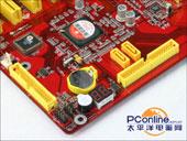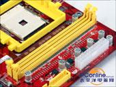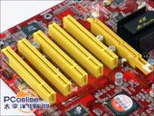 捷波 智尊 K8T7P 采用的是标准ATX架构,醒目的红色PCB板与黄色的插槽形成了强烈的对比,显得更为鲜艳夺目。