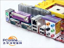 主板的背面I/O接口非常的标准,配备了四个USB 2.0接口,并且提供了支持7.1声道的音频接口。