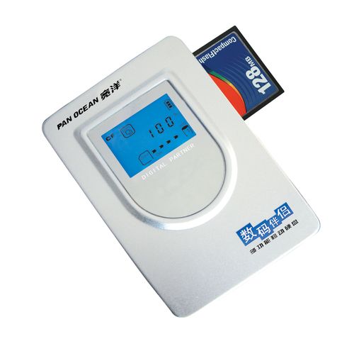 宽洋E380数码伴侣支持CF、CFII、SD、MMC、MS、MS Pro、MS Duo、XD、IBM Micro Drive等9种记忆卡,也同时具有高速移动硬盘的使用功能,通过数据线与电脑连接后,就可以对E380中的数据进行管理,存储大量数据。
