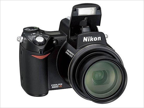 尼康CP8800是去年年底尼康推出的一款高端消费级数码相机,它采用全金属机身,使用一块2/3 CCD,有效输出像素为800W,采用尼康带有两块ED超低色散镜片的VR防抖镜头,10光学变焦,这是尼康公司第一次将其著名的VR防手震镜头系统加入到消费级别数码相机中。此外,该机还配备1.8英寸13.4万像素的可旋转LCD,并具有i-TTL闪光功能,存储介质采用CF卡,支持USB 2.0传输接口。