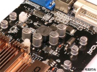 显卡提供VGA + S-Video + DVI的全输出方式,可满足用户的各种需要,各个输出接口附近的低通滤波电路非常完整,保证2D画质优秀。