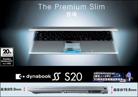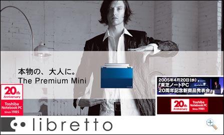 在时光倒流之前,我们最先还是来欣赏一下东芝在今年2005年4月20日发布的3款20周年纪念版笔记本!这三款笔记本分别为,Dynabook SS SX、Dynabook SS S20和Libretto U100,由于这三款笔记本的相关报道较多,这里也只是粗略带过。
