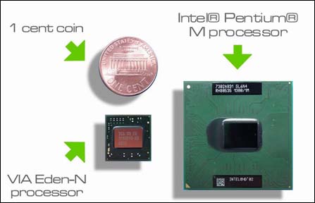2003年10月14日,VIA发布Eden-N处理器。Eden-N仍是是目前最小巧的高效率X86处理器之一,体积只有15×15mm,这款处理器在工作频率800MHz时,功耗仅6W;工作频率提高倒1GHz,功耗也只上升到7W。这样以来,处理器在工作中就无需采用风扇进行散热。这是继汉腾处理器后的又一款面向移动设备的低功耗处理器,虽说它的性能不强,却对处理器巨头进行了正面的又一次挑战。