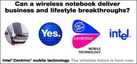 2003年1月8日,Intel发布了全新的笔记本电脑架构Centrino,也就是现在说的迅驰平台。Centrino构架包括了代号为Banias的Pentium-M移动处理器、Intel855芯片组(代号Odem、Montara-GM)和一个支持802.11b/a的WLAN(无线局域网)以及Mini-PCI卡(代号Calexico)。从这开始,笔记本电脑的平台化开始深入人心;相关带动的还有无线网络的迅速普及。不过这个平台的正式推广、发布是在同年的3月12日。