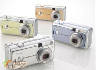 佳能 A 系列数码数码相机以其相对较低的价格和不俗的性能,一度成为家庭用户的首选。现在佳能可供选择的低端产品很多, A400 是其中比较出色的一款。 这款 A400 是佳能 A310 的升级产品,它的外形很有特点,长长的机身、平直的线条,大方朴实。机身的颜色除了浅绿色外,还有天蓝、银色、金黄等版本供您选择。