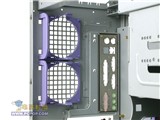 同时硬盘支架上还有两个风扇位,在兼顾了硬盘散热的同时,更可以与机箱后部的两个8cm风扇位共同组建一条机箱内部风道,从而弥补了没有AGP槽散热孔的缺陷,而且散热效果会更加优秀。