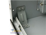机箱底部同样有加固处理,从这一简单的设计中我们便可看出厂家严谨、认真的态度。细节处,同样体现在与侧板接触的弹片上,这样机箱才能符合严格的NCTC辐射干扰B级(民用)标准。
