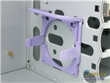 作为一款定位于入门服务器的机箱,散热系统自然不能被忽视,否则难以满足服务器苛刻的工作要求。(服务器要是因为温度原因而引起死机、重起,这影响的可不仅仅是一个人了)T10在这方便的设计同样值得称道。机箱内共可安装4只8cm散热风扇,其中两只安装在硬盘托架后面进行吸气,另两只安装在机箱后部进行排气。这4只风扇在机箱内形成了良好的空气循环,有效排出了机箱内的热量。其中两只吸气风扇安装在硬盘拖架的后面,同时也为发热量较高的硬盘进行散热。为了将CPU的温度降得更低,T10特意在CPU对应侧板位置加装了导风罩,如此可以将外界的冷空气直接引入到CPU散热器上,从而使CPU温度更低。