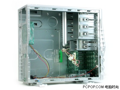 这是TH202的内部五金机构,其具有4大6小的扩展能力,足以应付日后升级。箱体材料方面它使用的是富士康特制的0.8mm热解镀锌钢板,抗变型能力强,同时还具有很好的散热性。