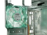 只要推动绿色的把手,安装主板的托板就可以取出机箱,这样安装起来自然方便了许多,而为了保证机箱内部的散热,后部TH202使用了一个12cm规格的透明风扇,风量大噪音小。