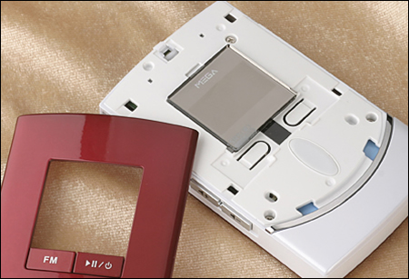 MS-5522机身尺寸为55 (W) x 89.83 (D) x 15.2 (H) mm,65克的重量较为适中。外形圆润可爱,机身能很好的支持换壳功能,利用配件的换壳工具(实际上是一条金属棒)再按照说明书上的步骤可以轻易地把外壳拆开,然后换上新壳。另外,为了红色的外壳,MS-5522还配备了红色的耳机,真是将红色进行到底啊。