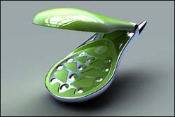 点评:这是俄罗斯的一家艺术工作室所设计的概念手机Mabbila,色彩极尽绚丽之能事,按键设计十分别致,手机的前面板上带有4个特别的按键,据说是数字表盘。手机键盘也比较奇特,凹凸有序。